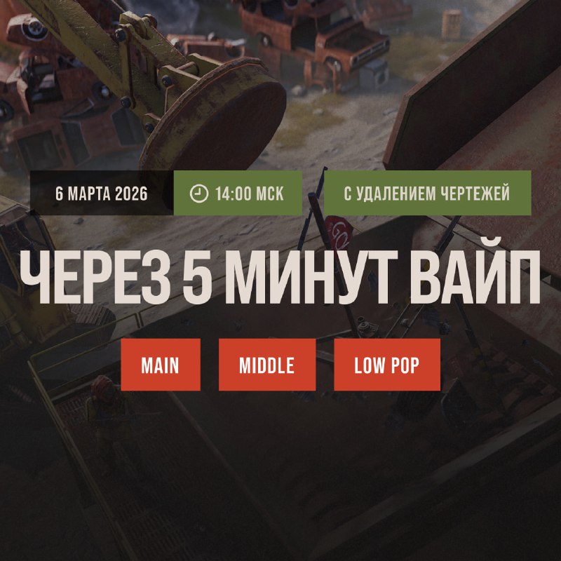 Через 5 минут на серверах Main, Middle и Low Pop произойдёт глобал вайп! 🗺 Голосованием в Discord выбраны карты на сервера Main - Middle - Low Pop Rust Room [Main]: connect main.rustroom.gg Rust Ro