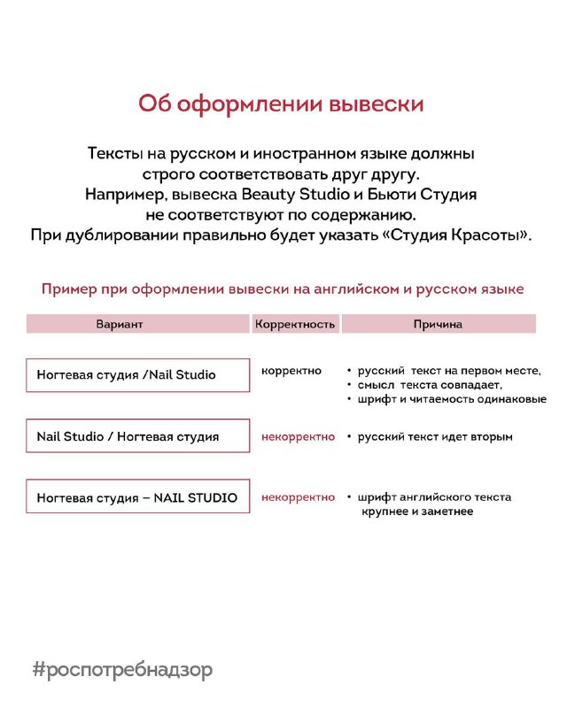 Роспотребнадзор информирует, на что посетителям салона красоты стоит обратить внимание: 1️⃣ Вывеска на входе. На входе в салон обязательно должна быть информация с указанием фирменного наименования,