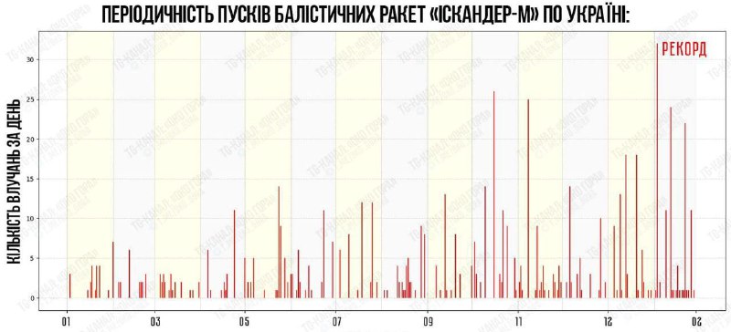 Рекордное количество ракет «Искандер-М» было запущено по Окраине в феврале 2026 года. Количество пусков за последние полгода: Сентябрь 2025 – 31 ед; Октябрь 2025 – 87 ед; Ноябрь 2025 – 67 ед; Декабрь