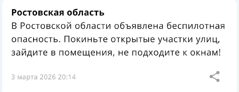 В Ростовской области объявлена беспилотная опасность 🔴Подписаться / Прислать новость