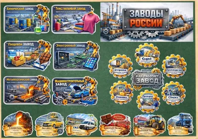 🎁 ОФОРМЛЕНИЕ КАБИНЕТА. ЗАВОДЫ РОССИИ ‼️ РАЗГОВОРЫ О ВАЖНОМ на 16 марта ‼️ ✅ В наборе: - Горизонтальный плакат - Карточки «Какие бывают заводы» - Карточки «заводы России» - Блок «Как работает заво