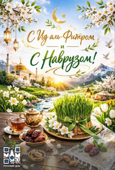 С праздником Ид аль-Фитр и Наврузом! 🌙 Пусть этот день наполнит ваши дома теплом, добром и радостью! #РусскийДомДушанбе #РусскийДомХоджент