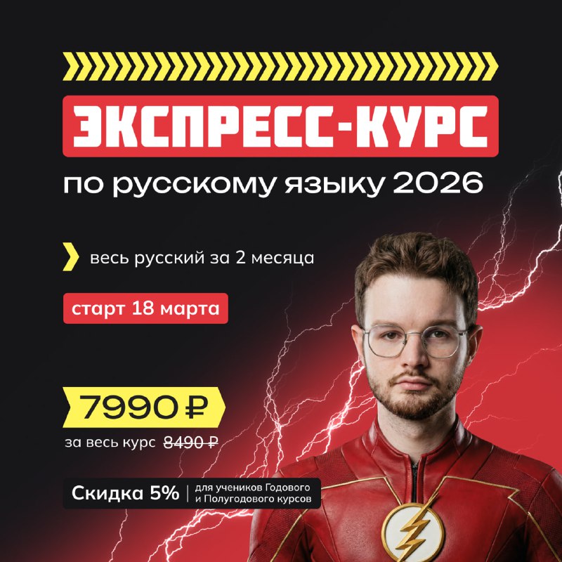 Открываем набор на мартовский Экспресс-курс по русскому 👻 Если хочешь подготовиться к ЕГЭ за короткий срок (можно даже с нуля), подтянуть сочинение и значительно улучшить свои баллы — тебе на Экспре