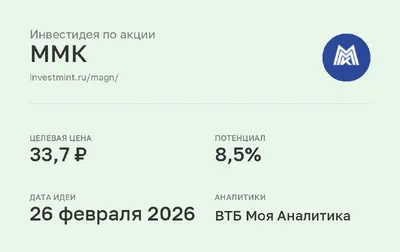 Инвестидея по акции ММК #MAGN • Целевая цена: 33,7 (8,5%) • Дата идеи: 26 февраля 2026 • Аналитики: ВТБ Моя Аналитика