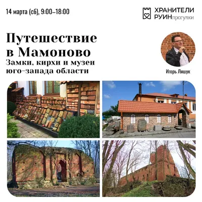 14 марта, в субботу, приглашаем в путешествие на юго-запад области в Мамоново и к легендарному замку Бальга! 🔥 Юго-западное направление области — одно из самых интересных для путешествий по региону: