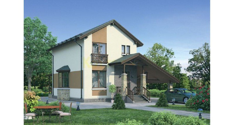 Проект двухэтажного дома. Фундамент - монолитный ж/б ленточный/плита. Стены - газобетон/кирпич. Перекрытие - ж/б плиты/монолит. Крыша - мягкая черепица/металлочерепица/керамическая черепица.