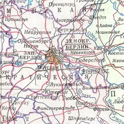 Возвращаясь к разделенным городам – стоит, наверно, сказать пару слов и о Берлине, хоть он разделенным давно не является. Тем более, что попалась вот такая гэдээровская карта города, где вместо Западн