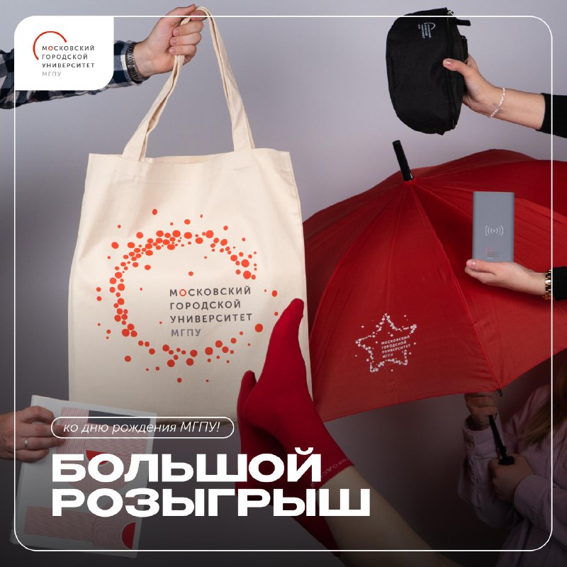 В честь праздника разыгрываем продукцию с символикой университета среди студентов МГПУ: будет 30 победителей и 1 суперприз 🎁 Что дарим? • 1 суперприз — рюкзак, ежедневник, портативное зарядное уст