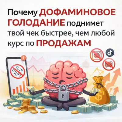 🧠 Почему дофаминовое голодание поднимет твой чек быстрее, чем любой курс по продажам Ты покупаешь очередной курс и думаешь: «Вот сейчас узнаю секретную технику закрытия сделок и попрут миллионы». Но