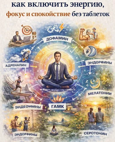 🧠 Гормоны успеха: как включить энергию, фокус и спокойствие без таблеток Твоя продуктивность, энергия, стрессоустойчивость и качество решений сильно зависят не только от мотивации, но и от внутренн