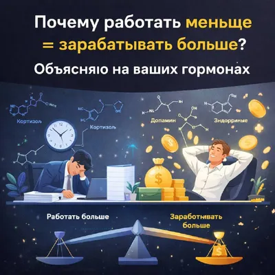 🧠 Почему работать меньше = зарабатывать больше? Объясняю на гормонах 💰 Звучит как бред для трудоголика. Но давай посмотрим на факты. Самые дорогие люди на рынке — это не те, кто пашет 14/7. Это те