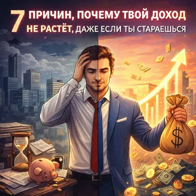 7 причин, почему твой доход не растёт, даже если ты стараешься 📉 Кажется, что ты пашешь, как проклятый: курсы куплены, книги прочитаны, рабочий день длится с 8 утра до 10 вечера. Но чек с места не д