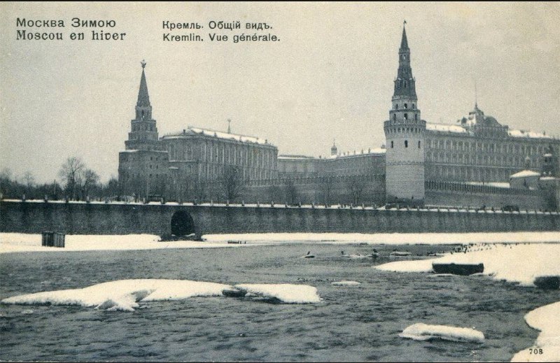 Общий вид на Кремль, Москва. 1904-1909 годы Источник: из серии открыток "Москва зимою" московского издательства П. Фон-Гиргенсона Российская империя