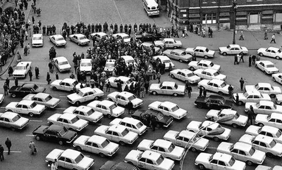 Акция протеста московских таксистов, 28 октября 1991 года, СССР. В тот день московские таксисты перекрыли Тверскую улицу в Москве, выступая против азербайджанской мафии, которая поделила Москву на зон