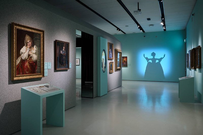 Тени маскарада 🎭 Залы выставки «Под маской» — пространство игр и тайн, где раздается шелест парчовых юбок и таинственный шепот. На стенах мелькают тени изящных дам и кавалеров, созданные по задумке