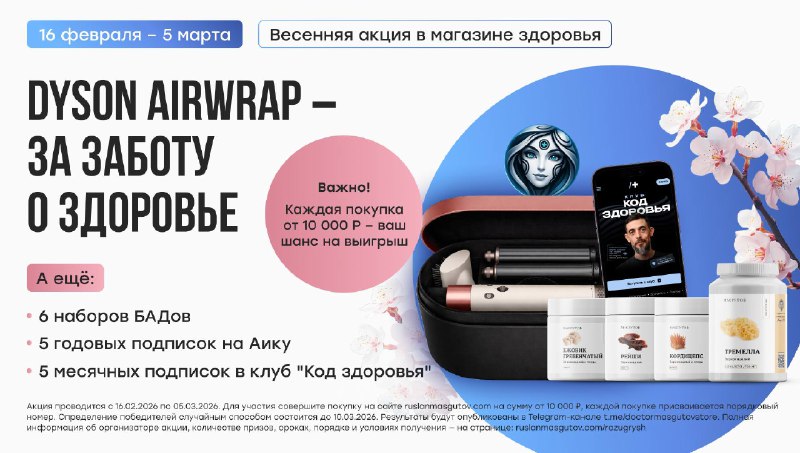 🎁 Завтра последний день розыгрыша! Среди покупателей магазина мы разыграем: • Dyson Airwrap • наборы «Мужская сила» и «Женственность» • годовые подписки на ИИ-ассистента Аику • доступ в клуб «Код з