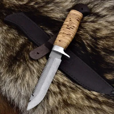 Нож Рыбацкий-3 усиленная гарда, сталь D2, береста 💷 Цена 8.000 Тип стали D2 Твердость 62 HRC Материал рукоятки Береста Общая длина 250 мм Длина клинка 125-130 мм Ширина клинка 27 мм Толщина клинк