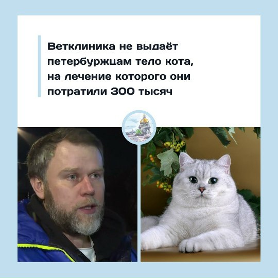 Семья из Петербурга столкнулась с вымогательством со стороны ветклиники за неудачное лечение их кота Каспера Животное попало в стационар и пролежало там несколько дней. По словам владельцев Катерины
