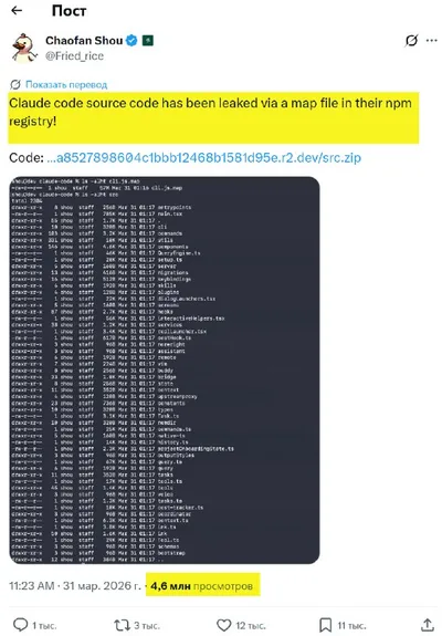 🈁 Пишут, что "исходный код Claude Code" от Anthropic утёк в открытый доступ через map-файл в npm-реестре. https://github.com/instructkr/claude-code По одной из версий, Anthropic случайно включили в