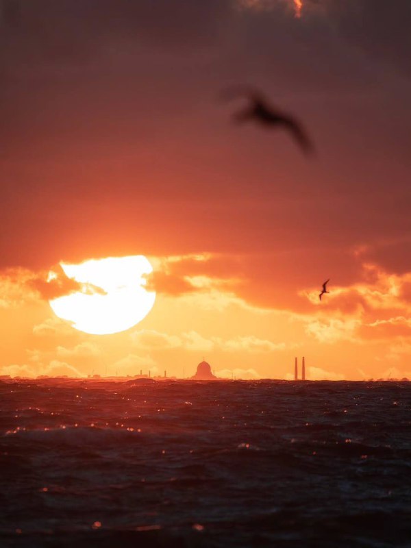 едва заметный купол Морского Никольского собора в Кронштадте на фоне заходящего Солнца. фото: ru.ko.spb