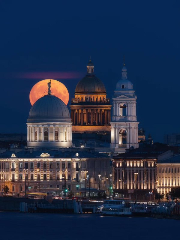Исаакиевский собор и Екатерининская церковь на фоне восходящей полной Луны. фото: ru.ko.spb