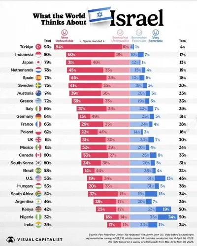 🇮🇱 🇹🇷 Турция вышла на 1 место по ненависти к Израилю в мире. Чувствуют ненависть к Израилю 93% турок, хорошо относятся всего 4%.