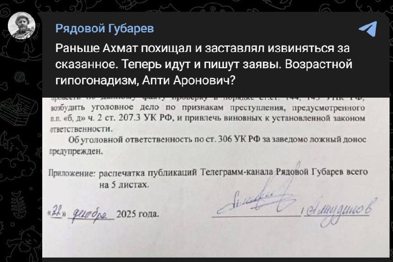 Конфликт между Павлом Губаревым и замначальника Главного военно-политического управления МО РФ (по совместительству командиром «Ахмата») Апти Алаудиновым выходит на новый уровень комедии Краткая пред