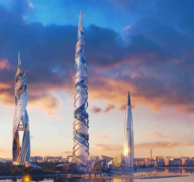 Две новые башни «Лахта Центра» в Санкт-Петербурге планируют построить к 2033 году! Их максимальная высота составит 710 и 570 метров 🏙️ На территории комплексов планируется разместить выставочные