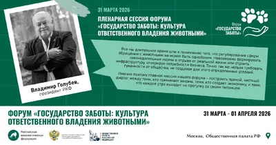 📌 Форум «ГОСУДАРСТВО ЗАБОТЫ: КУЛЬТУРА ОТВЕТСТВЕННОГО ВЛАДЕНИЯ ЖИВОТНЫМИ» 31 марта 2026 года форум «Государство заботы: культура ответственного владения животными» откроется пленарной сессией, в рамк