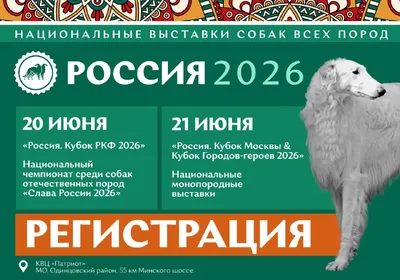 📣 Открыта регистрация на национальные выставки собак всех пород «Россия 2026» 📣 Дорогие друзья, уважаемые коллеги! В 2026 году, в год 35-летия РКФ, мы приняли решение провести нашу «Россию» на пло