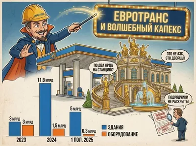 Евротранс и волшебный капекс. Коллеги, давайте посмотрим на капитальные затраты Евротранса. 2023 год - капекс 9,8 млрд рублей. Здания 3 млрд, оборудование 3 млрд, неотделимые улучшения арендованных