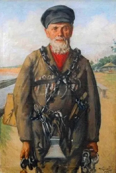 Иван Семенович Куликов. Продавец павловских товаров (собенщик). 1936 г. Мы ранее публиковали картину художника Павловский кустарь. Село Павлово (или Павлово-на-Оке) Горбатовского уезда Нижегородской