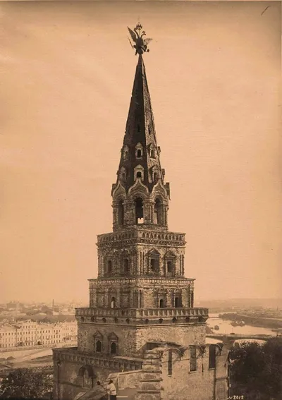 Вид верхней части Боровицкой башни Кремля. Москва, 1889 год Боровицкая башня (также Предтеченская, Чертольские ворота, Боровицкие ворота) — башня и проездные ворота в юго-западной части Московского К