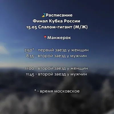 🙈Попытка номер 3. Расписание на завтрашний Финал Кубка России в слаломе-гиганте у мужчин и женщин в Манжероке 🤞Надеемся, что погодные условия позволят провести завтрашние соревнования. За результат
