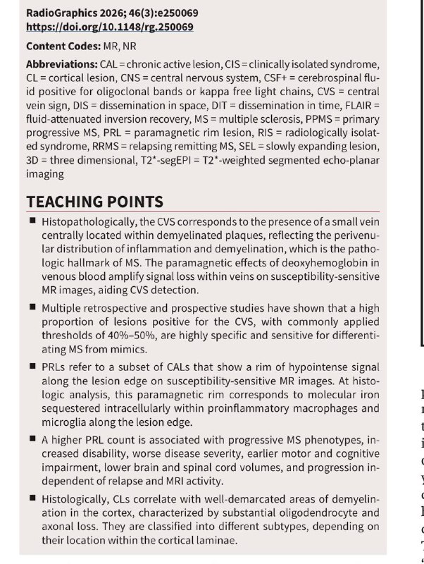 Про новые биомаркеры РС в свежем обзоре от Радиографикса. ВАЖНО ЗАПОМНИТЬ Гистопатологически CVS соответствует наличию небольшой вены, расположенной в центре очагов демиелинизации, отражающей пер