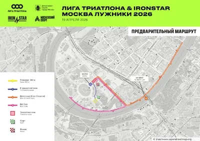 Внимание участникам фестиваля ЛИГА ТРИАТЛОНА & IRONSTAR МОСКВА ЛУЖНИКИ 2026! Делимся с вами картами предварительных маршрутов дистанций: ЛИГА ТРИАТЛОНА & IRONSTAR 1/8: 🏊♂️Плавание (0,38 км) 🚴♂