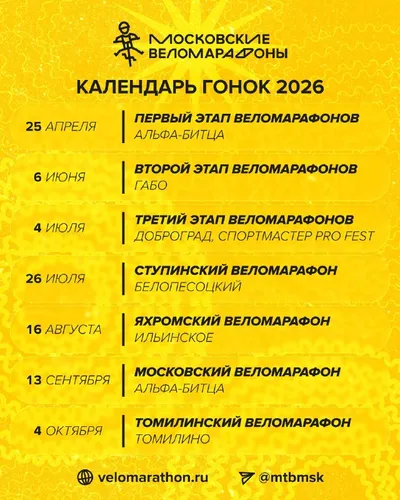 Календарь Московских веломарафонов 2026 — открываем гоночный сезон 25 апреля в Альфа-Битце 🚴♂️ Московские веломарафоны — это серия любительских МТБ-гонок для взрослых и детей с 5 лет. Здесь есть ме