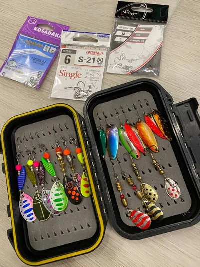 Товарищи рыбаки всем привет🤝 Вот и готов полностью комплект приманок для горной рыбалки🎣 Сегодня пришли колебалочки Смит и Дайва. Поменял тройники где можно на одинарники, а так же спасибо Владими