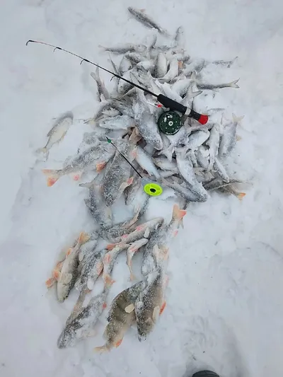 Привет, рыбаки! Озеро Ик, 28.02. С 9 до 14 часов, расклевался окунь ближе к 11. Брал на паузе и на отрыве ото дна. Ловил на мормышку желто-белую и красно-белую с подсадкой мотыля. Вывозил Максим из Ки