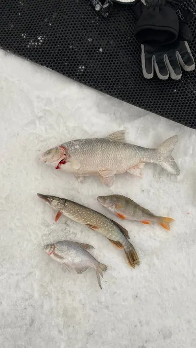Всем привет 👋 👋 👋 Затон Рэб.Глубина примерно 4м,кормил мормышем,ловил на мотыля. Рыба не очень активна. Ставил жерлицы,всего одна сработка и красавчик судачок пойман) Весь улов не фоткал. Народу б