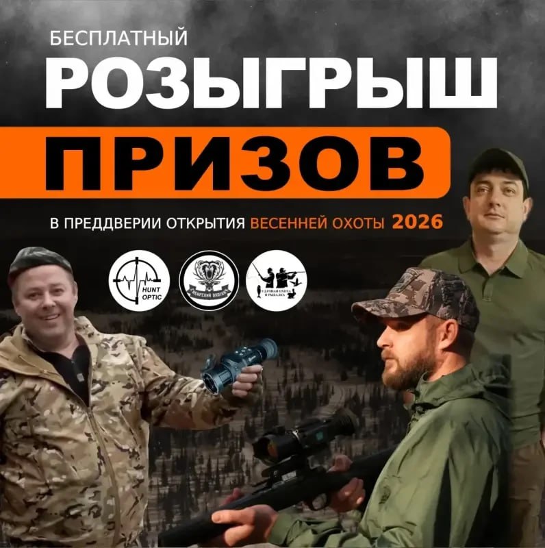 ⚡️БЕСПЛАТНЫЙ РОЗЫГРЫШ 🎁 ✔️ УСЛОВИЯ МАКСИМАЛЬНО ПРОСТЫЕ: Подписаться на MAX-каналы: 1. Интернет магазин hunt-optic.ru 2. Сибирский Охотник🐕 3. Удачная охота и рыбалка ⏱️ 15.04.2026 в 12-00 по МСК