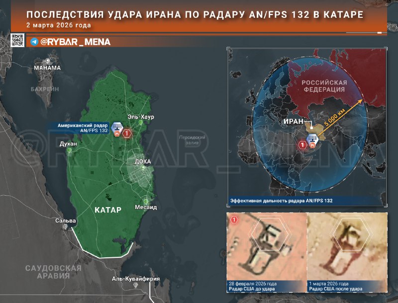 📝Самый чувствительный удар📝 Иранцы дотянулись до американской ПРО Похоже, информация о повреждении иранцами компонента американской ПРО подтверждается: если в Бахрейне уничтожили лишь станцию спутн
