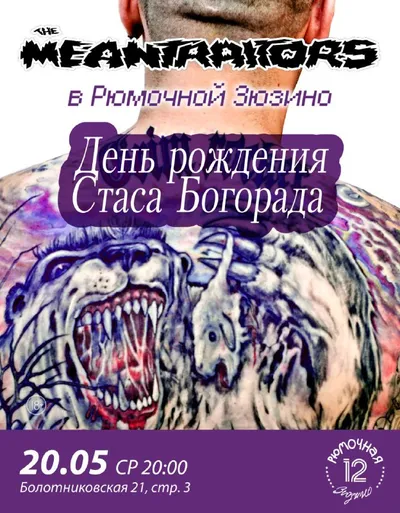 20 мая в Рюмочной Зюзино выступит живая легенда российского psychobilly - группа The Meantraitors ⚡️☠️⚡️ Концерт по случаю Дня рождения Стаса Богорада ⚡🍷⚡ Не пропустите! Билеты и столики - https://r