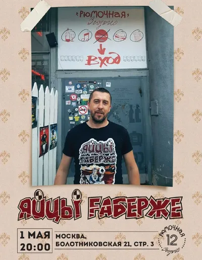 1 мая в Рюмочной Зюзино впервые выступит группа ЯйцЫ Fаберже ⚡️🎹⚡️ Билеты здесь - https://ryumochnaya.net/node/1495 В день концерта дороже ❗️Справки по тел. +7 929 963-36-16 (пн-сб, с 12:00 до 21:0