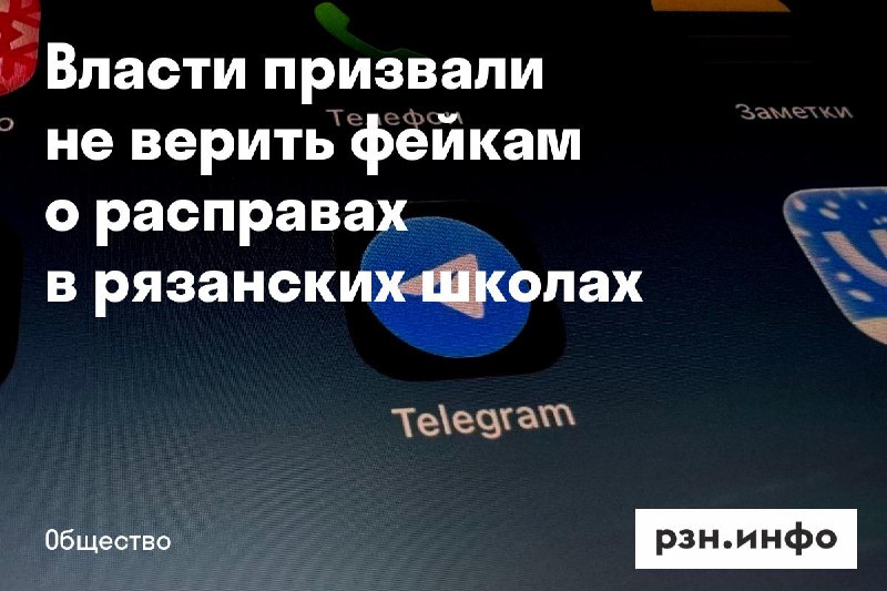 Власти призвали не верить фейкам о расправах в рязанских школах «В Telegram распространяется ложная информация о „канале“, якобы предупреждающем об угрозах расправ в школах. Это фейк», — заявили в опе