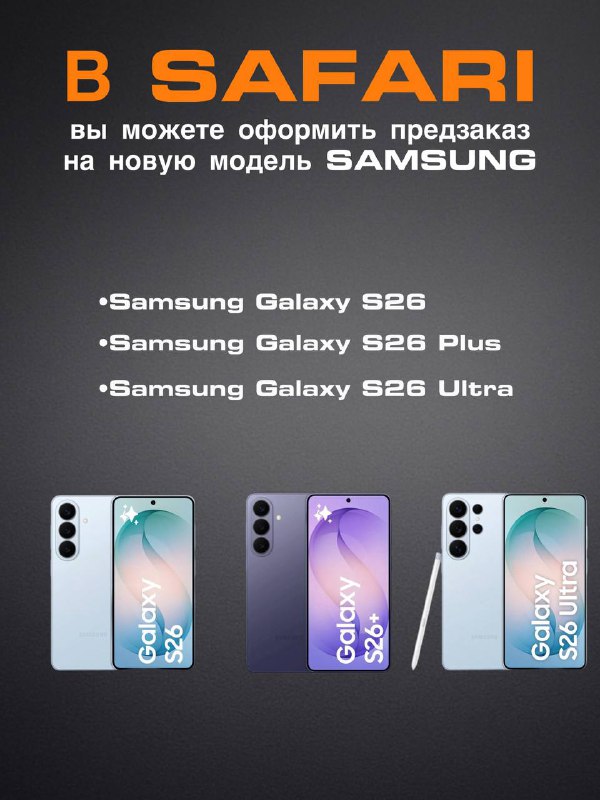 В продаже новые модели Samsung: Samsung 26 | Samsung 26 ultra | Samsung 26 plus Почему стоит обратить внимание на эти смартфоны: •Современный дизайн — стильные и эргономичные, удобно лежат в руке