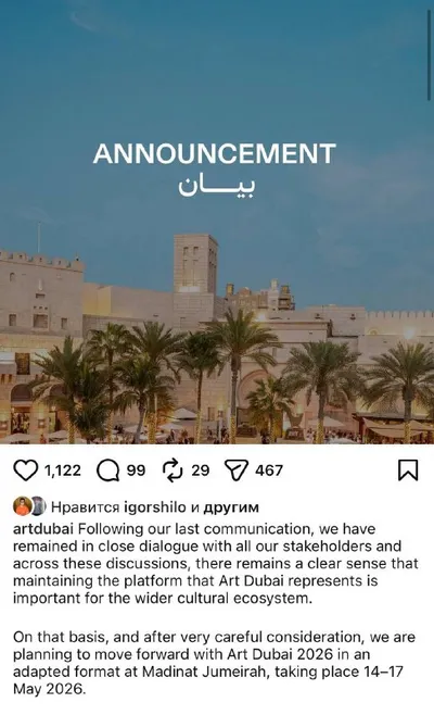Art Dubai объявил новые даты. И они совпадают со всеми ярмарками в Нью-Йорке (Frieze, Nada, Independent и др) , и с прекрасной ярмаркой на Кипре — Vima art fair.