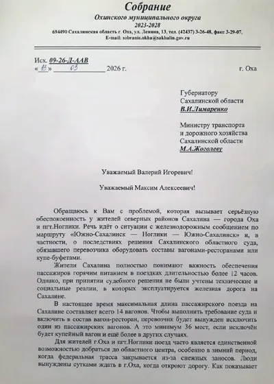 ⭐️ Депутат из Охи просит не убирать пассажирские места ради вагона-ресторана Депутат Собрания Охинского муниципального округа Артем Анисимов обратился к губернатору Валерию Лимаренко и министру транс