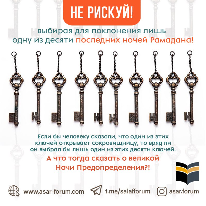 ❗️Не рискуй, выбирая для поклонения лишь одну из десяти последних ночей Рамадана! ⤵️ Распространяйте среди родных, близких и знакомых ©️ https://t.me/salafforum