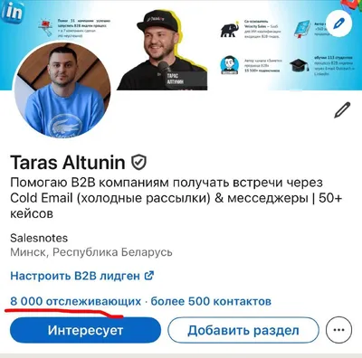 ПродажиАвторский блог Тараса Алтунина. О том, как привлекать В2В клиентов через Email Outreach, LinkedIn, контент-маркетинг и личный бренд В2В лидген для вашей компании: salesnotes.ru По рекламе: @Salesnotes_bot РКН: clck.ru/3FdZZh